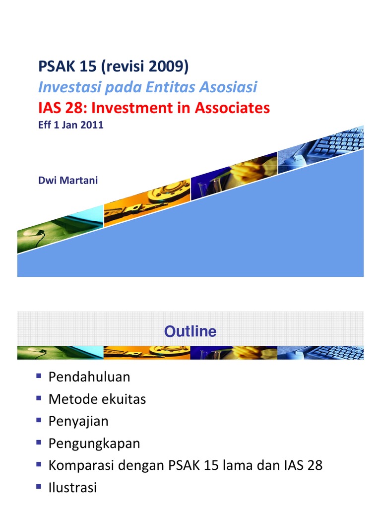 Investment in associates eff 1 jan 2011 dwi martani 2. Pernyataan ini menggantikan psak 15 investasi pada entitas asosiasi. Outline pendahuluan metode ekuitas penyajian pengungkapan komparasi dengan psak 15 lama dan ias 28 ilustrasi 2 3.