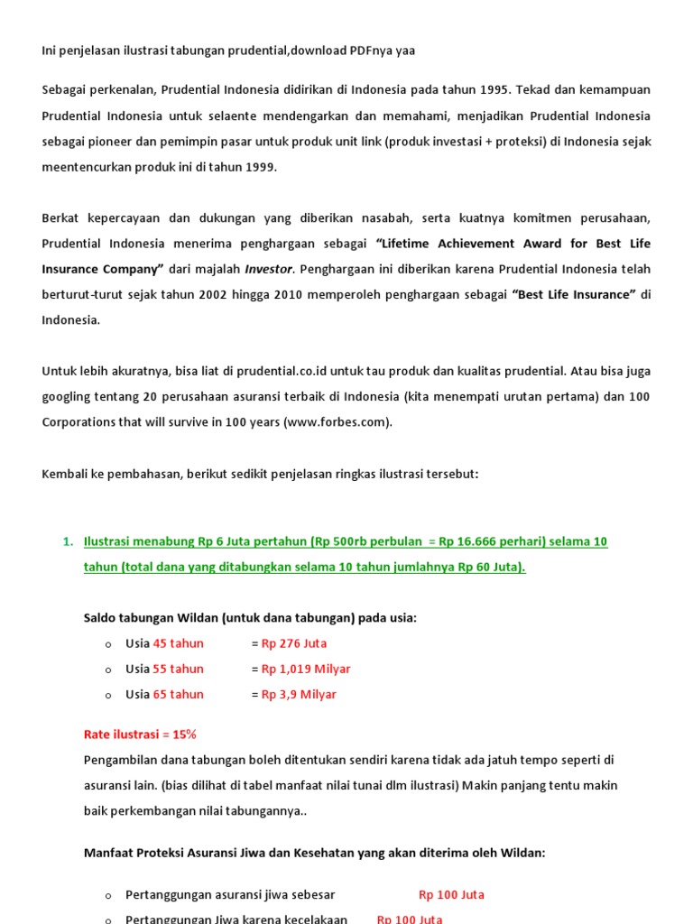 Penjelasan Ilustrasi Tabungan Prudential